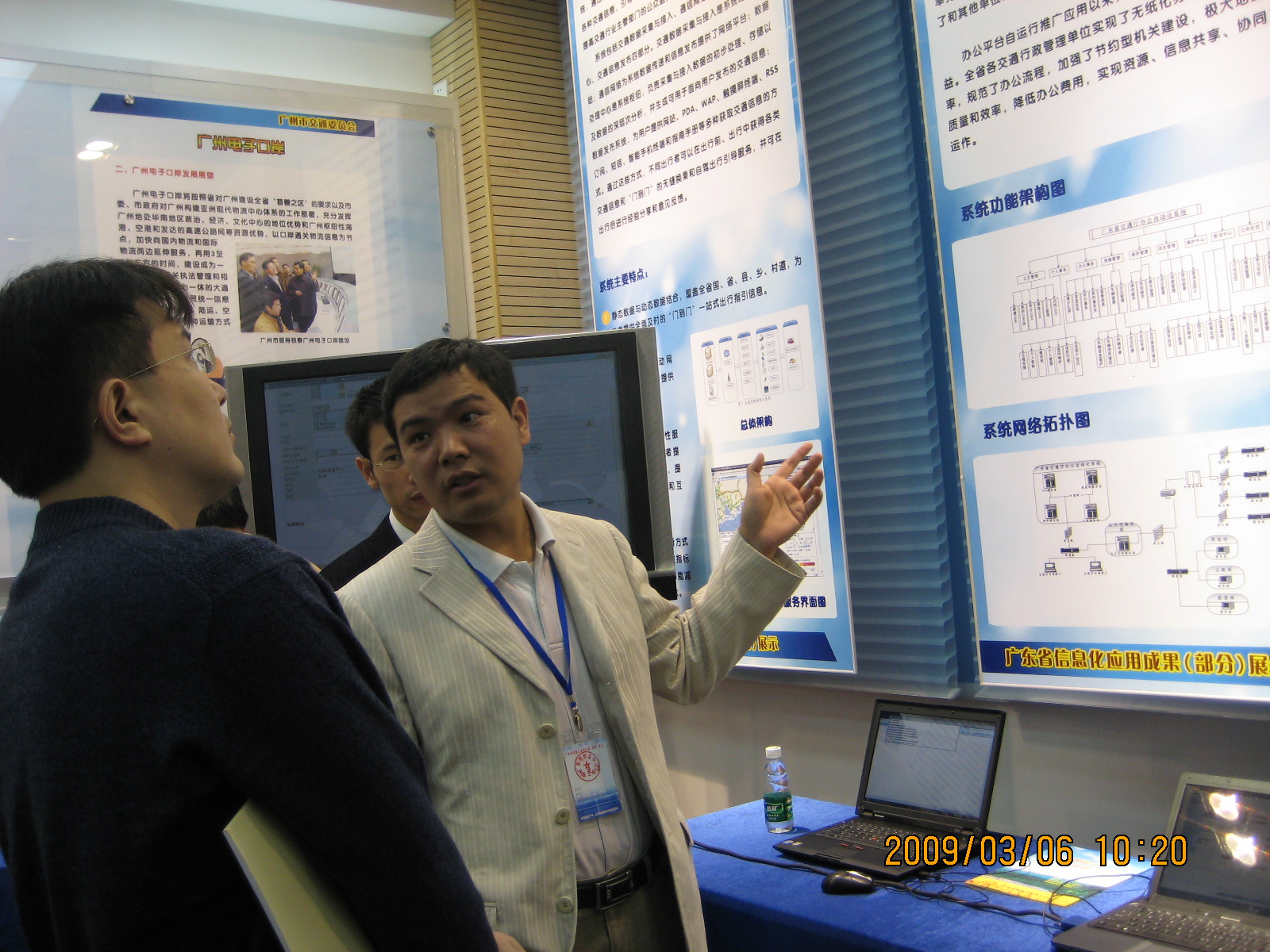 怡禄电讯所参与建设的电子政务信息系统再次得到省政府及用户的好评,本月4号-9号,由公司闻总带头,代表广东省交通厅参与省信息产业厅主办的"广东省信息化应用成果展"活动,在活动中给来访领导及观众做了多场《广东交通异构协同综合办公平台》系统的演示及讲解,吸引了大量观众。