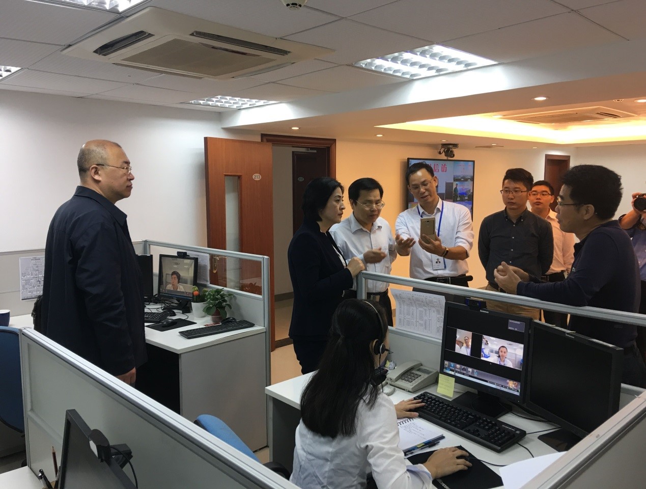 本月14日由国家投诉受理办公室领导带队,汇同省信访局领导及梅州、河源等信访局领导一起,到广州市信访局调研五位一体的网上信访信息化情况。一众领导详细参观了由我司承担研发的云信访、云客服及全新的手机视频信访等系统,我司戴志惠总经理在现场做了操作演示,并就技术和使用方面作了交流与答疑。国家办领导对广州信访信息化应用高度赞扬,对将传统信访办公系统与在线客服和将手机视频信访等无缝对接,实现五位一体的新做法高度认可。在此感谢各级领导对我司的关心与支持!我们会再接再厉做好信访信息化产品的研发,为全国网上信访系统建设做贡献。