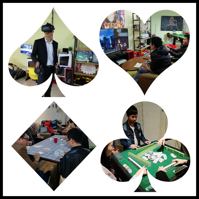 接下来就是大家的自由娱乐时间。在这里,有VR,XBOX,KTV,沙狐球,桌球,飞镖,格斗街机,桌游,麻将,德州扑克等多种多样的游戏等着大家尽情玩耍。