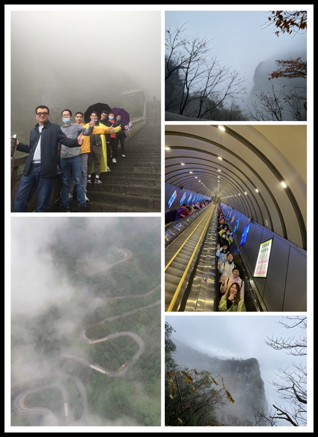 在天门山我们体验了【盘龙崖玻璃栈道】、【穿山扶梯】、【999级天梯】、【天门洞】等著名景点。